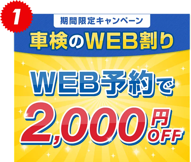 車検2ヵ月以上前に当ホームページから車検をご予約いただくと、基本車検料金から2,000円割引いたします。