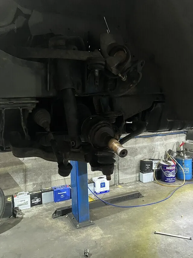 大東市のお客様より、トヨタ ハイエースの足回り異音修理のご依頼をいただきました。