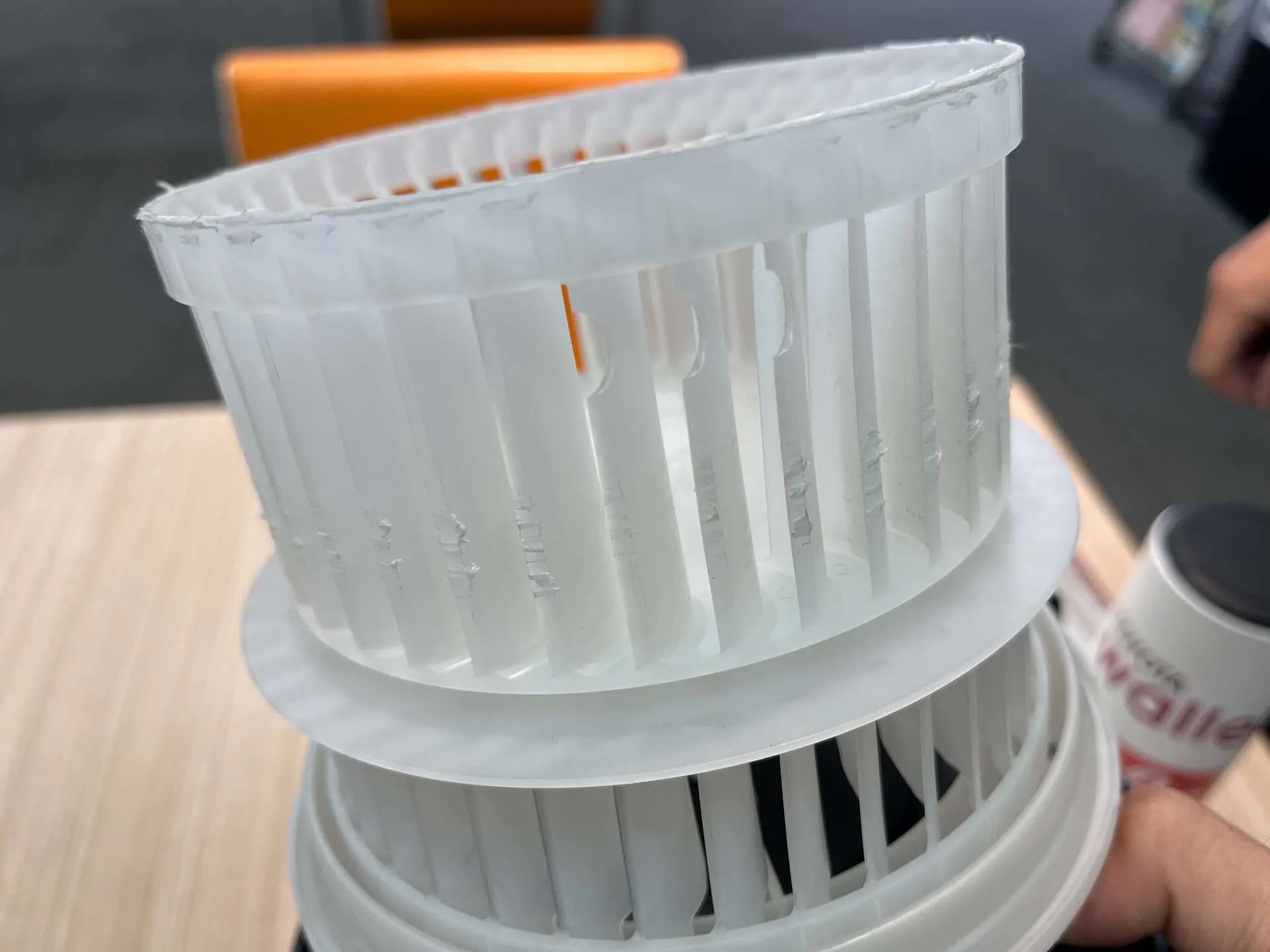 写真の通り、取り外したファンには汚れの付着と小さなキズが見られ、回転バランスが崩れていました。